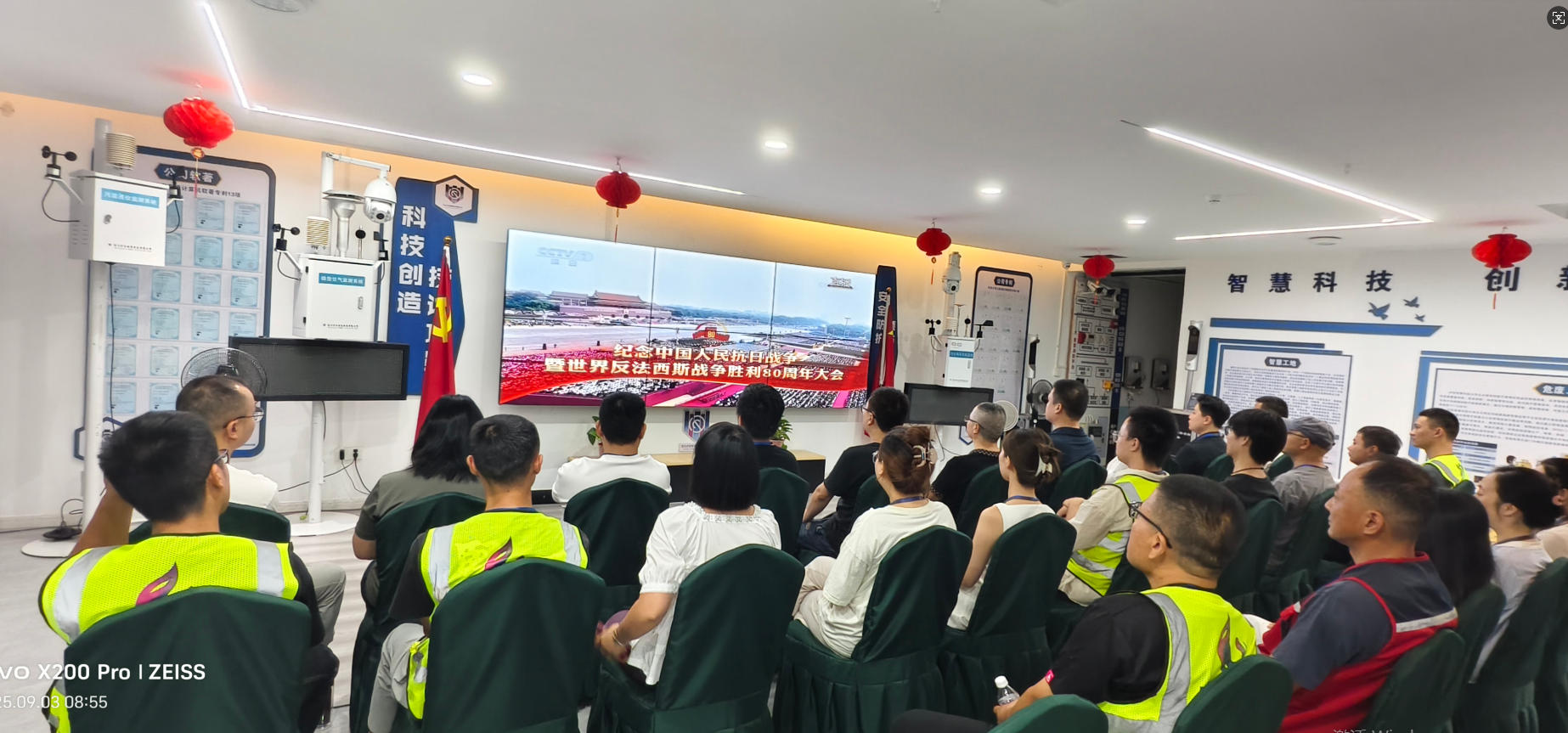 今日上午九时,泸安智慧科技有限公司全体职工齐聚公司展厅,共同观看阅兵直播。当雄壮的国歌奏响,整齐划一的方阵迈着铿锵步伐走过天安门广场,现场响起热烈的掌声。这一刻,屏幕内外同频共振,科技与爱国情怀在此刻深度融合,凝聚成一股强大的精神力量,激荡在每一位泸安人的心中。这不仅是一场盛大的阅兵仪式,更是一次精神的洗礼,一次使命的召唤,激励着全体职工以科技为剑,共筑民族复兴的强国梦。